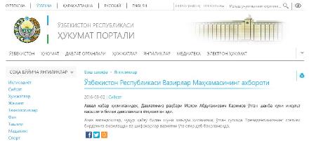 Манба: Ўзбекистон Республикаси ҳукумат портали.